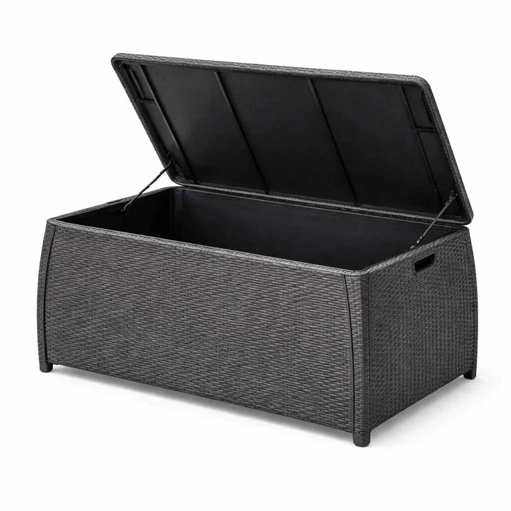 Contenitore da Giardino in Rattan Sintetico Nero con Interno in Polipropilene