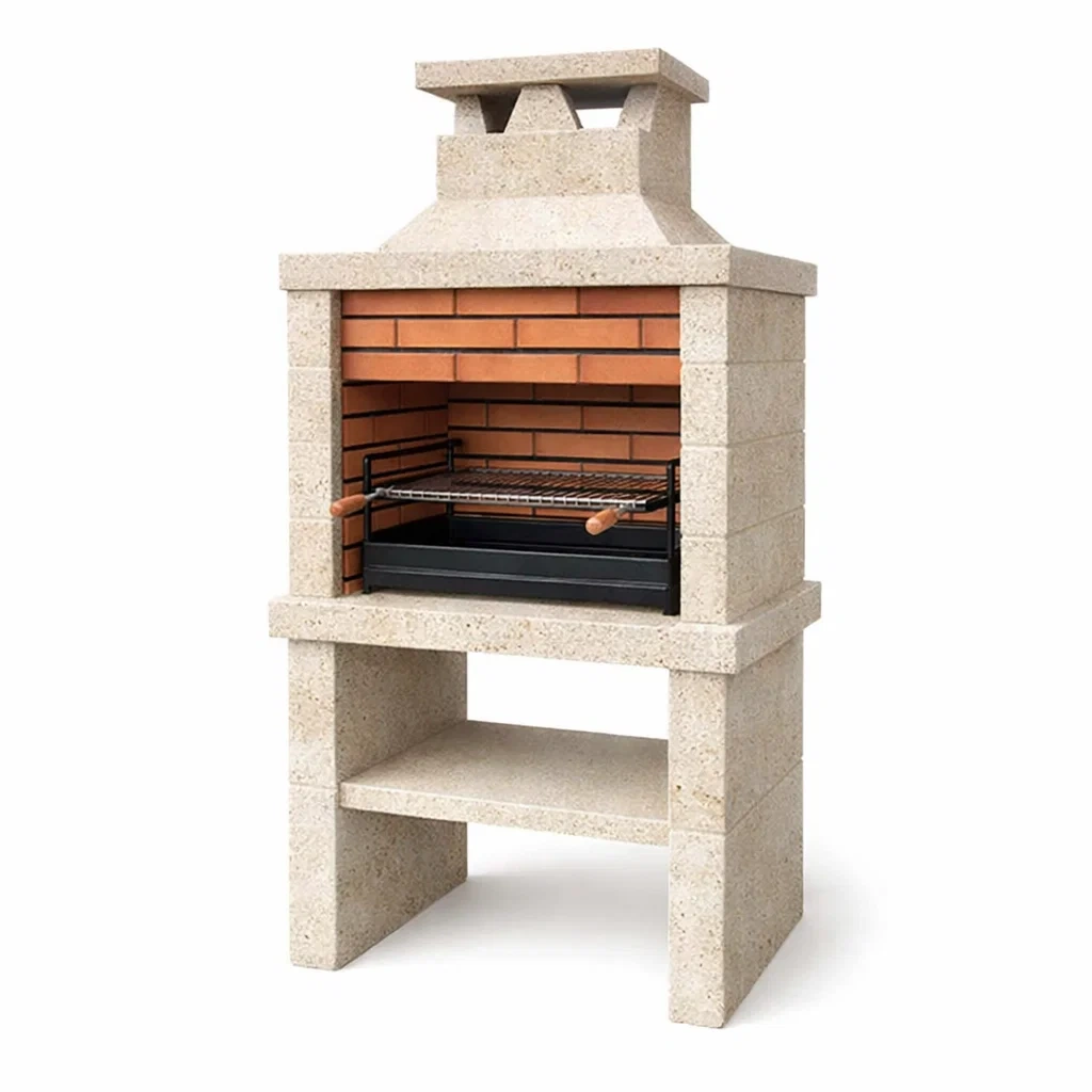 Prodotto per cucina all'aperto composto da blocchi di cemento e rivestimento interno in mattone refrattario. Misura 100 cm di larghezza, 60 cm di profondità e 200 cm di altezza. La griglia in acciaio permette una cottura uniforme dei cibi.