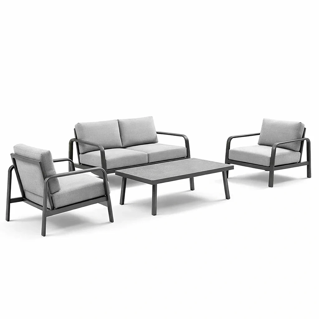 Set da salotto in Alluminio e Poliestere con Divano Poltrone e Tavolino