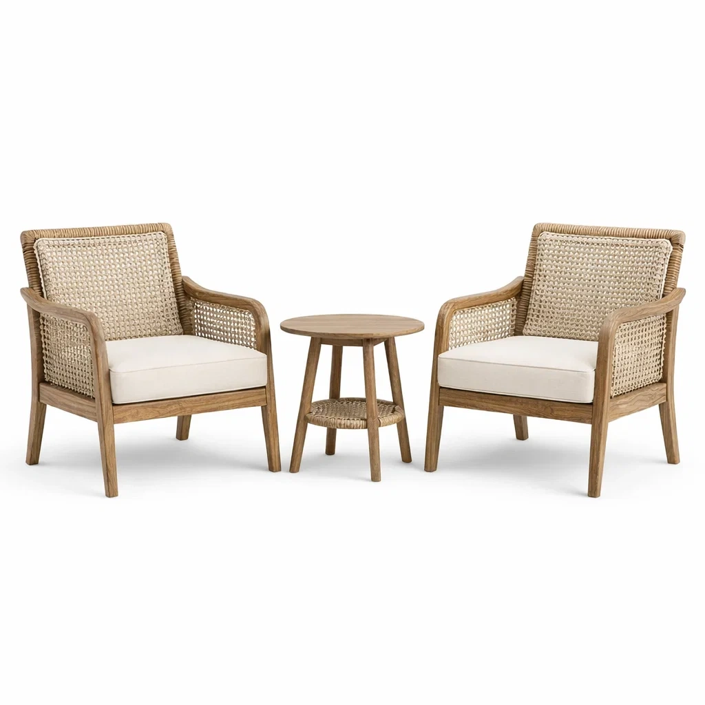 Set relax in Rattan e Legno con Poltrone e Tavolino
